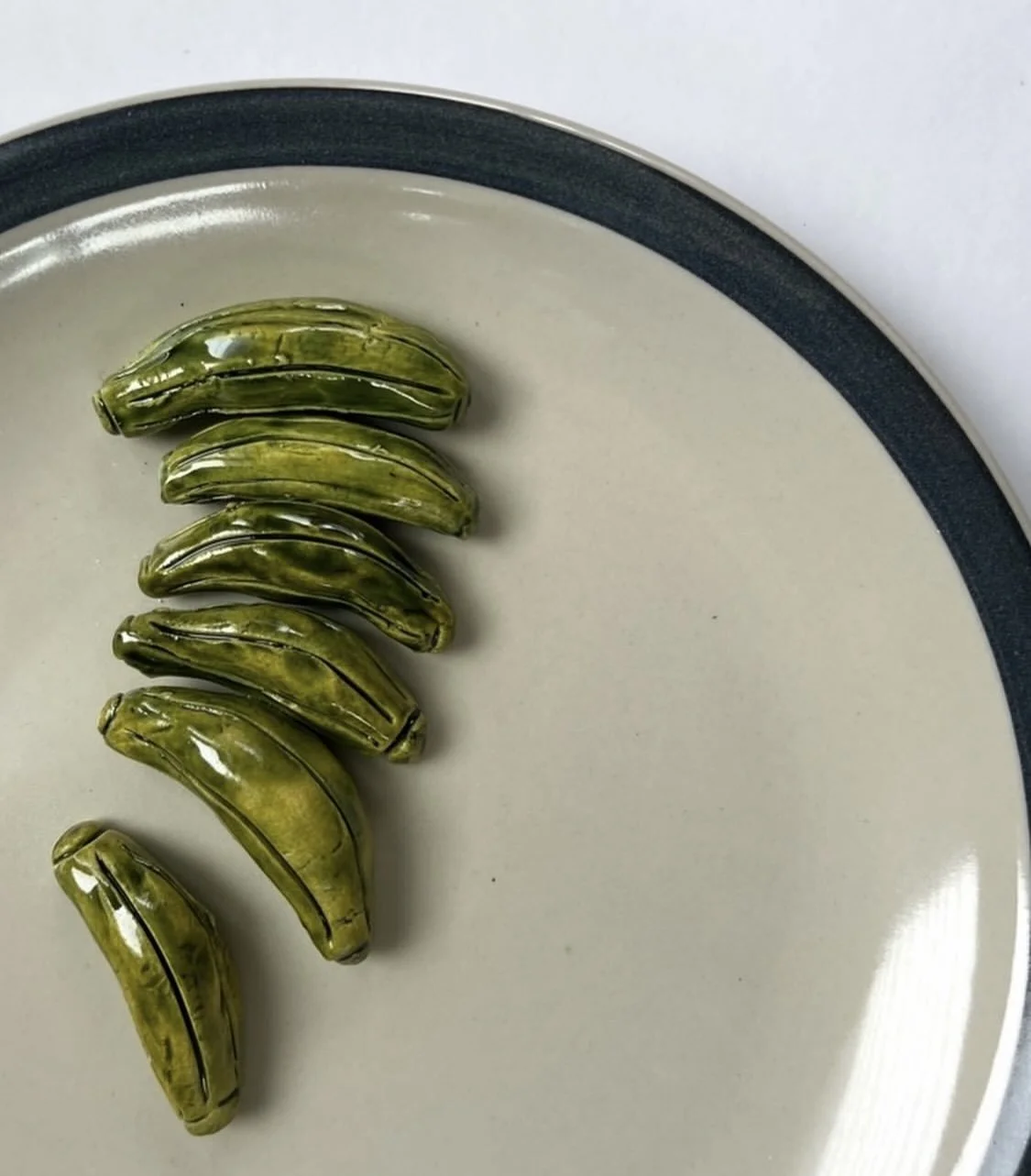 gherkin plate detail glazed ceramic on found plate 7.5 in diameter