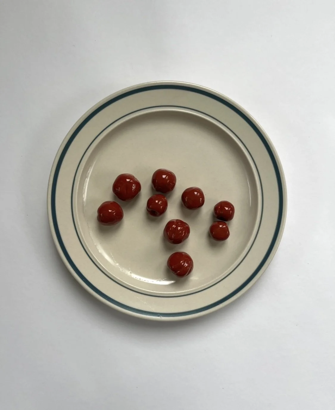 cherry plate glazed ceramic on found plate 7.5 in diameter
