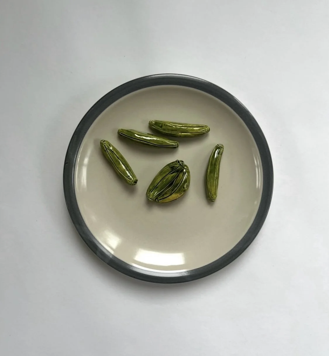 gherkin plate glazed ceramic on found plate 7.5 in diameter